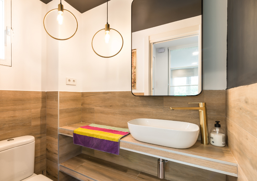 Los baños fueron completamente renovados, apostando por soluciones prácticas y duraderas. En uno de ellos, se incorporó un lavabo de doble seno sobre encimera, ideal para el uso simultáneo por dos personas, facilitando la rutina diaria. Este detalle, además de mejorar el confort, ayuda a optimizar tiempos en espacios compartidos.
